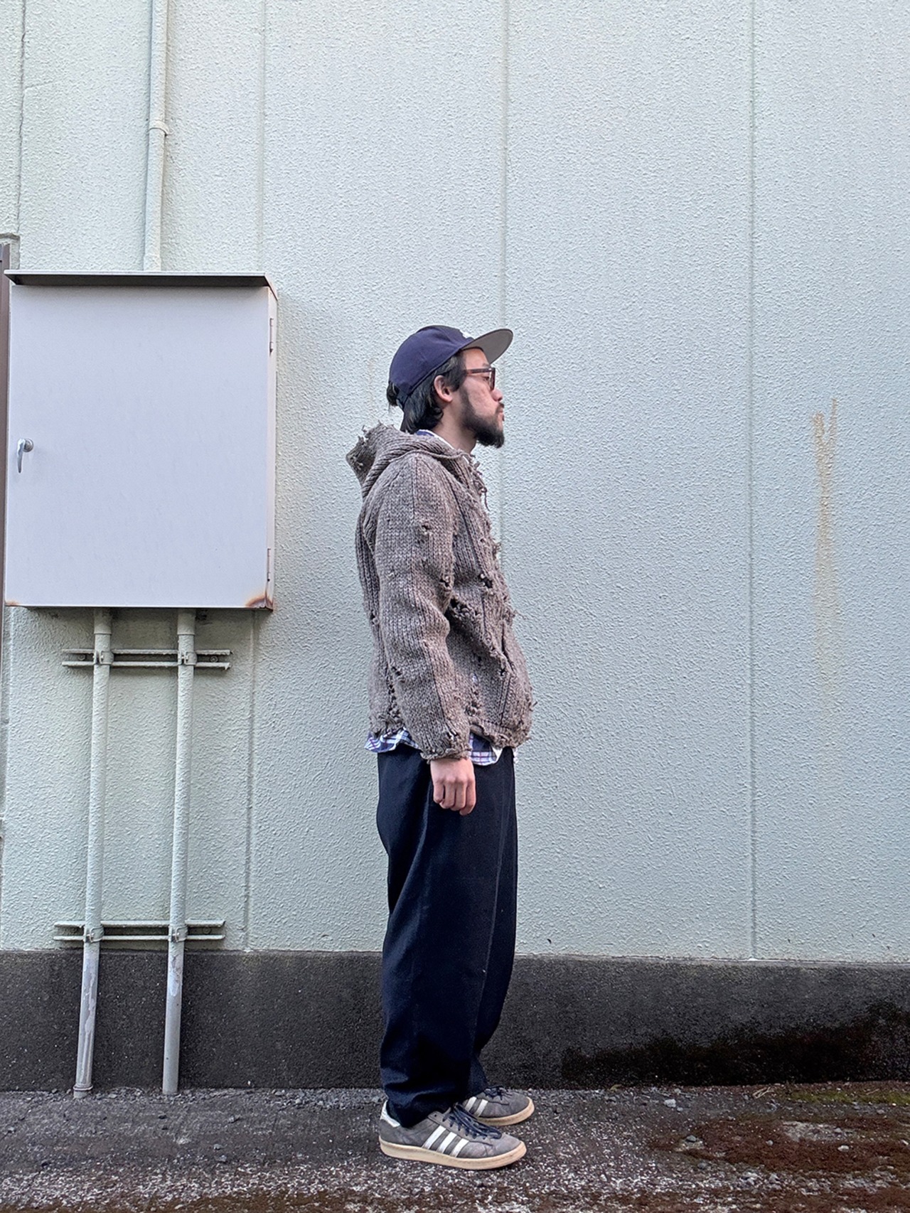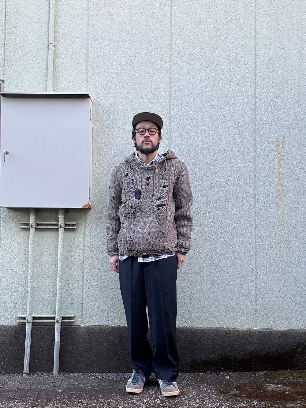 メキパ風のニットパーカ。
