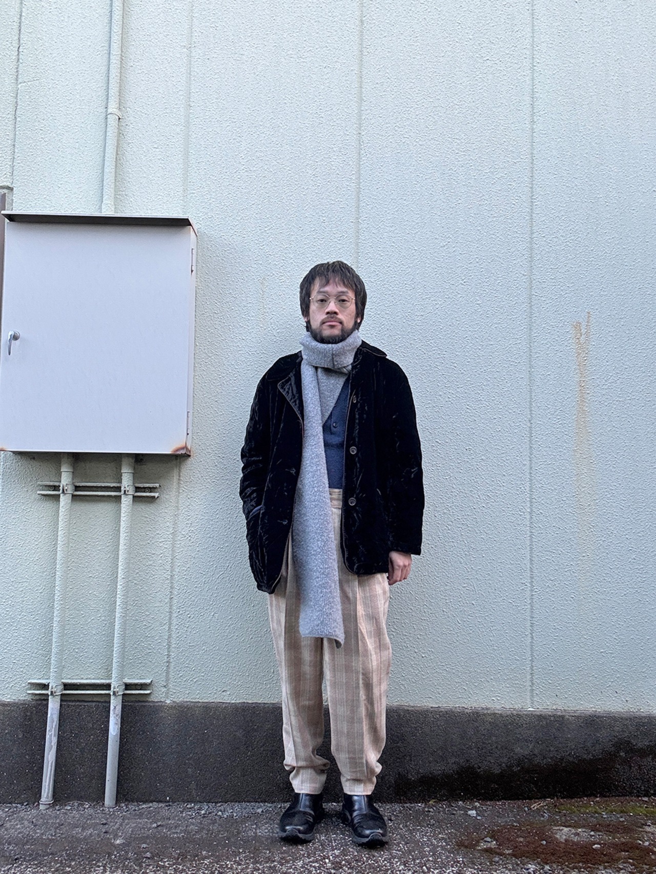 ヴェルベットを用いたカバーオールジャケット。