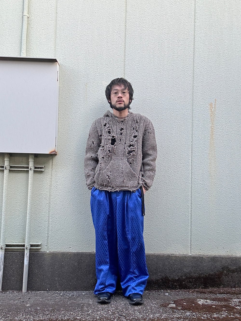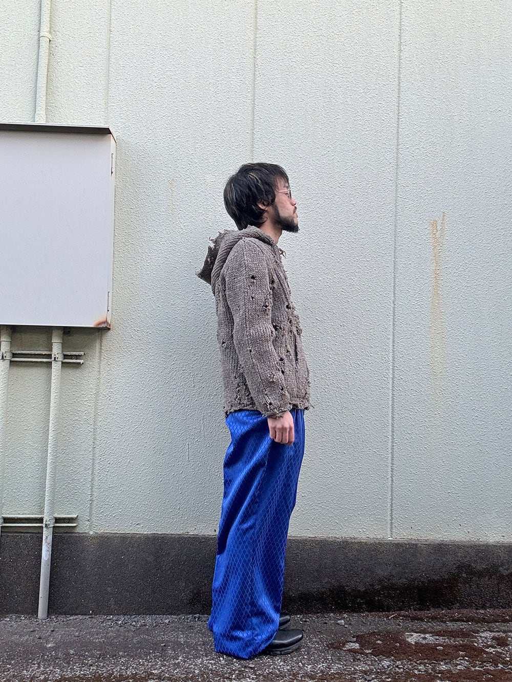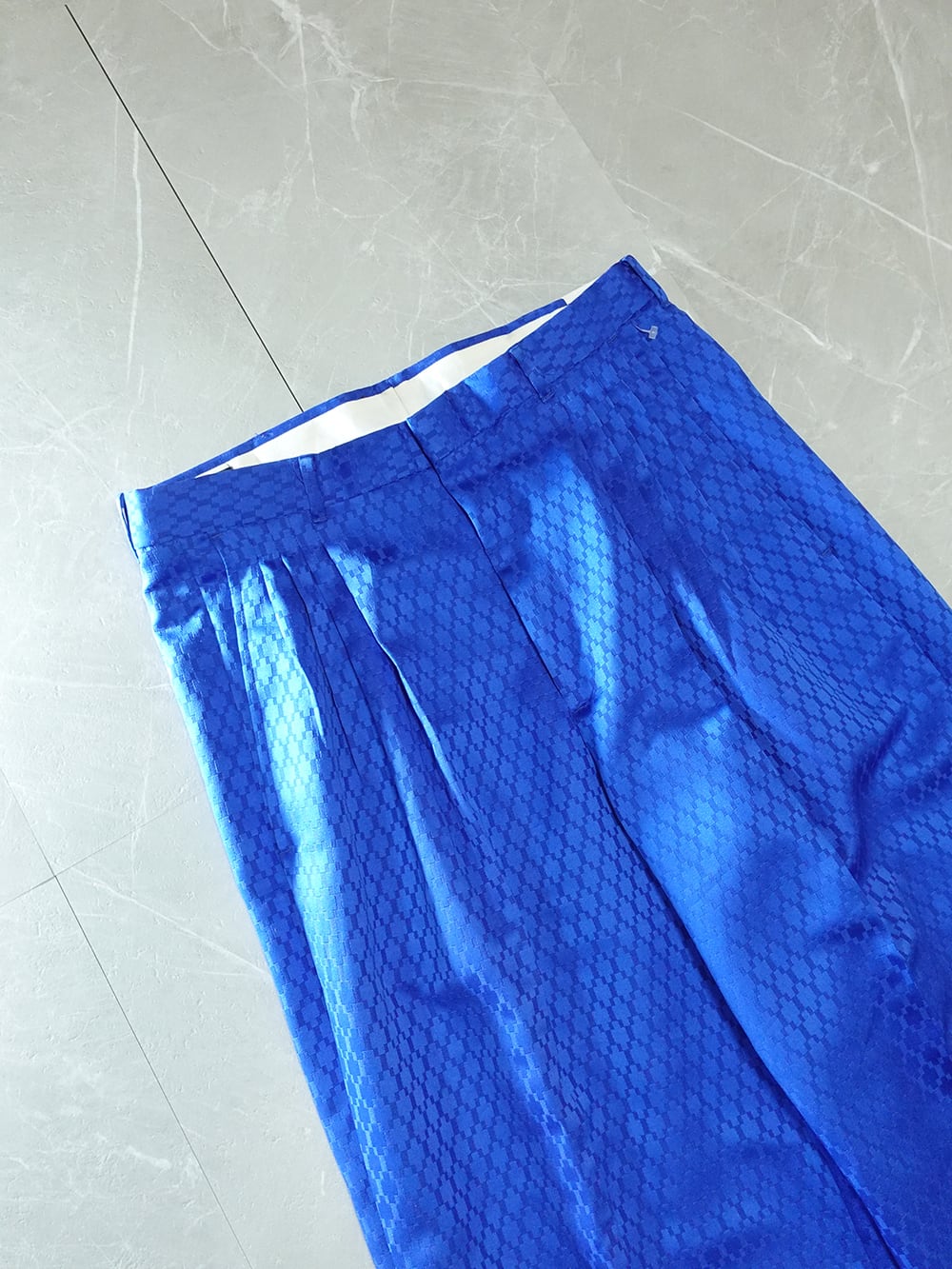 特徴的な生地が使われたトラウザース。