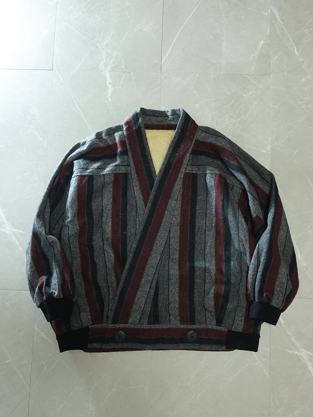 【DEAD STOCK】80s? JAPAN VINTAGE WOOL KIMONO JACKET/日本ウールストライプ着物ジャケット