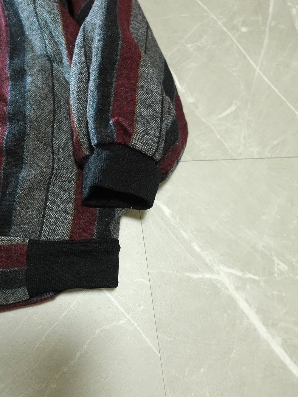 内側に品質表示も付き、表のストライプは、