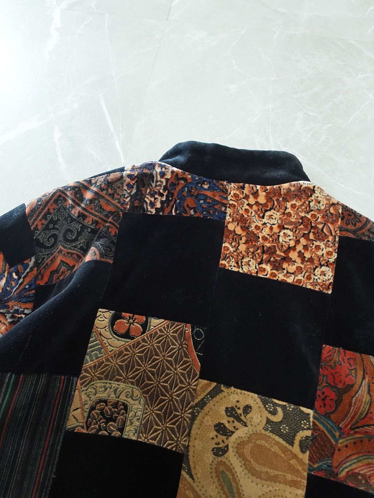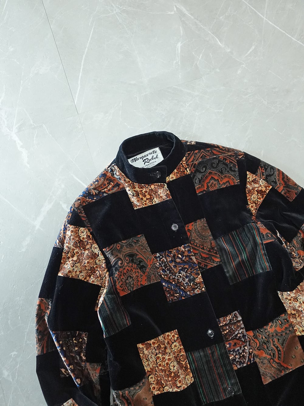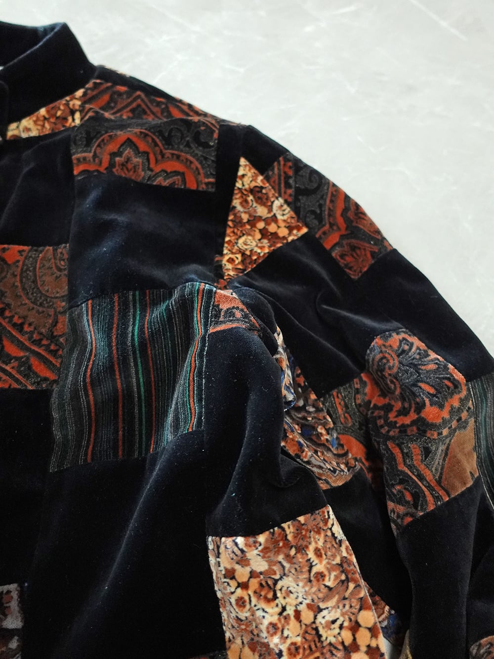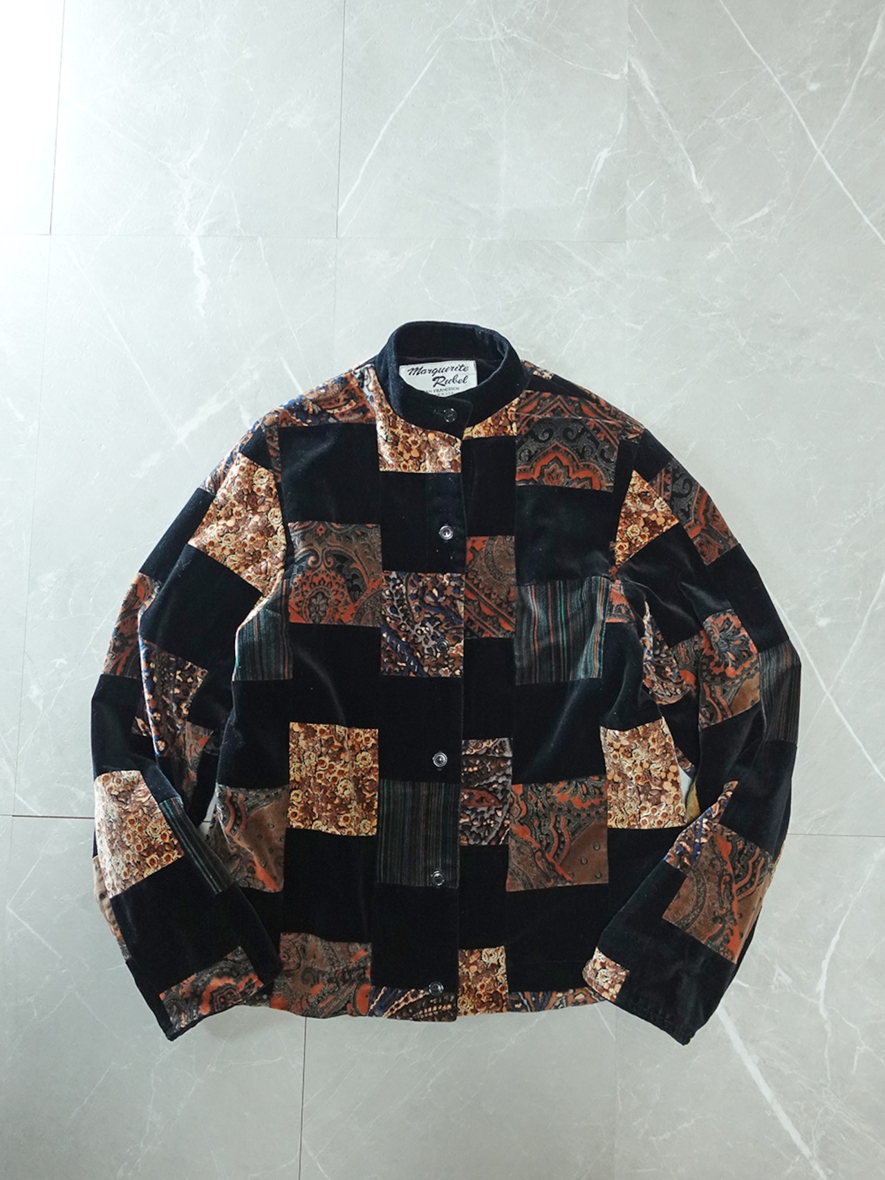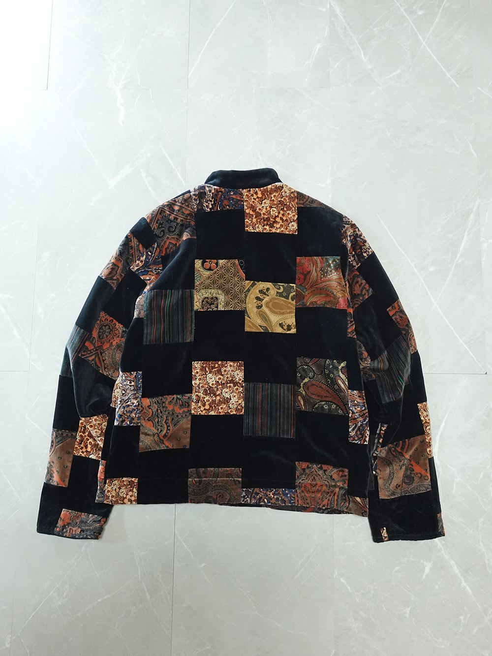 MADE IN USA VELOUR PATCHWORK MAO-COLLAR JACKET/アメリカ製パッチワークマオカラージャケット