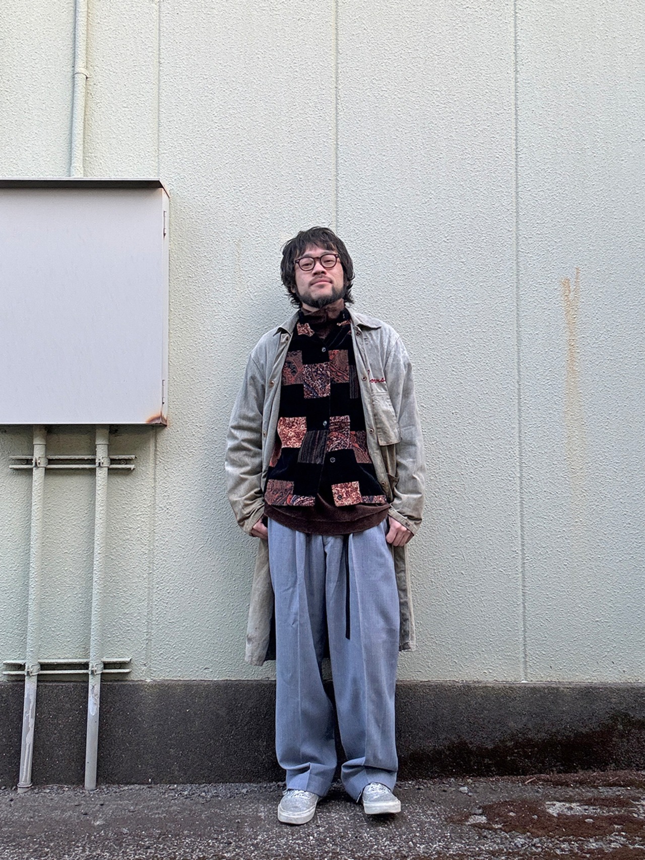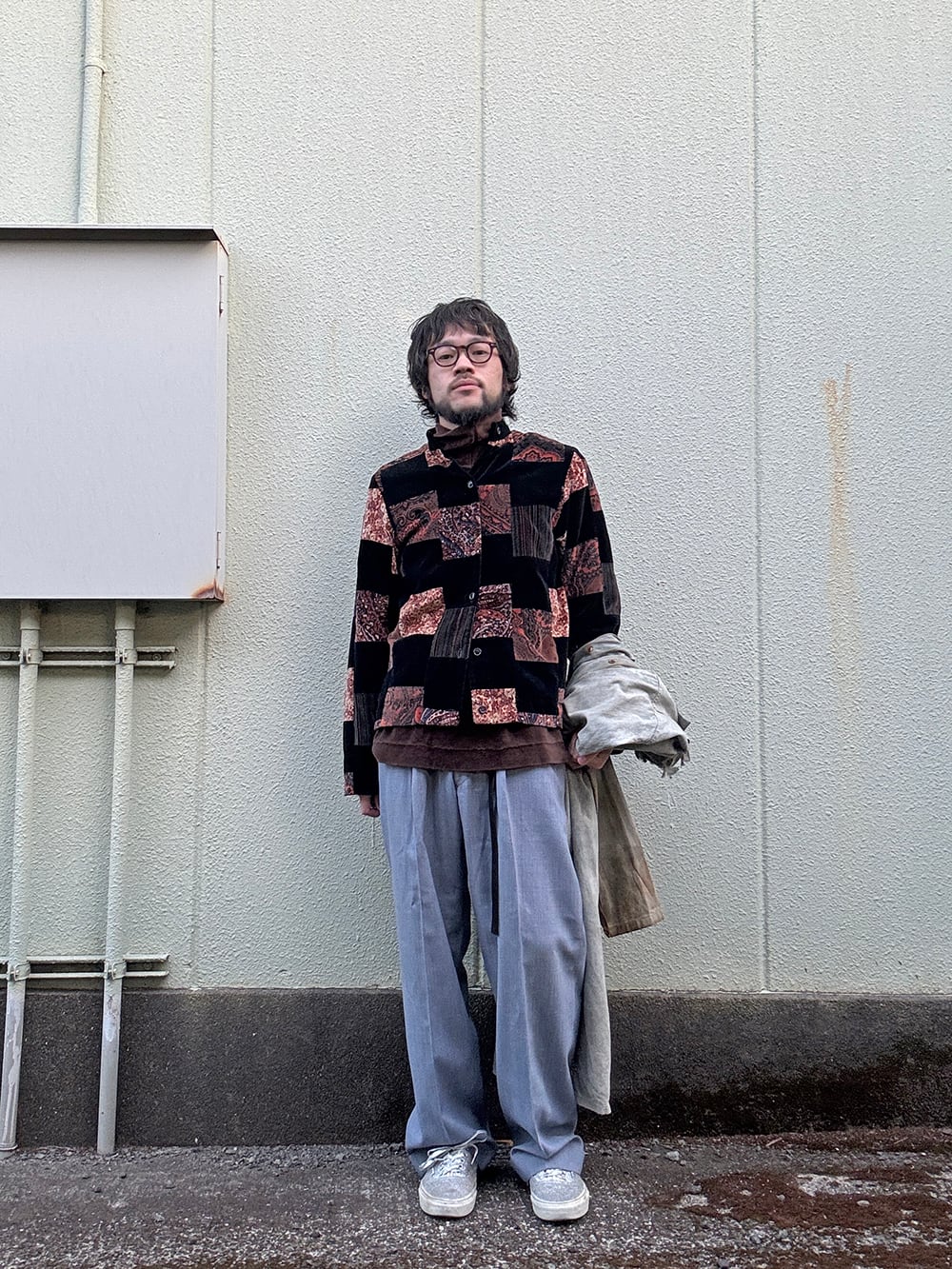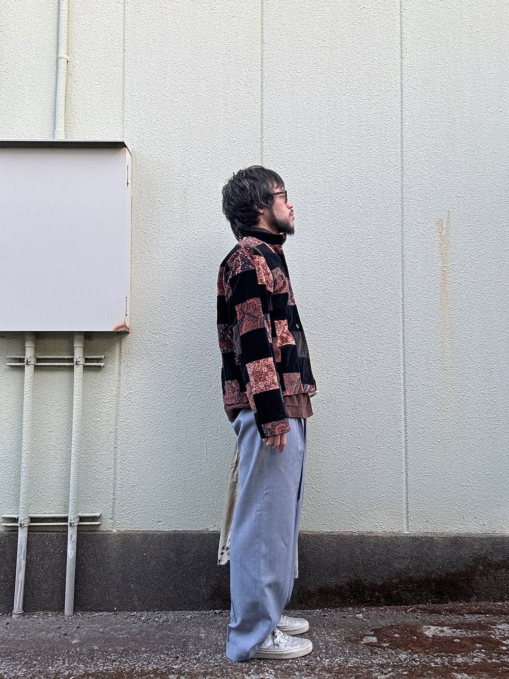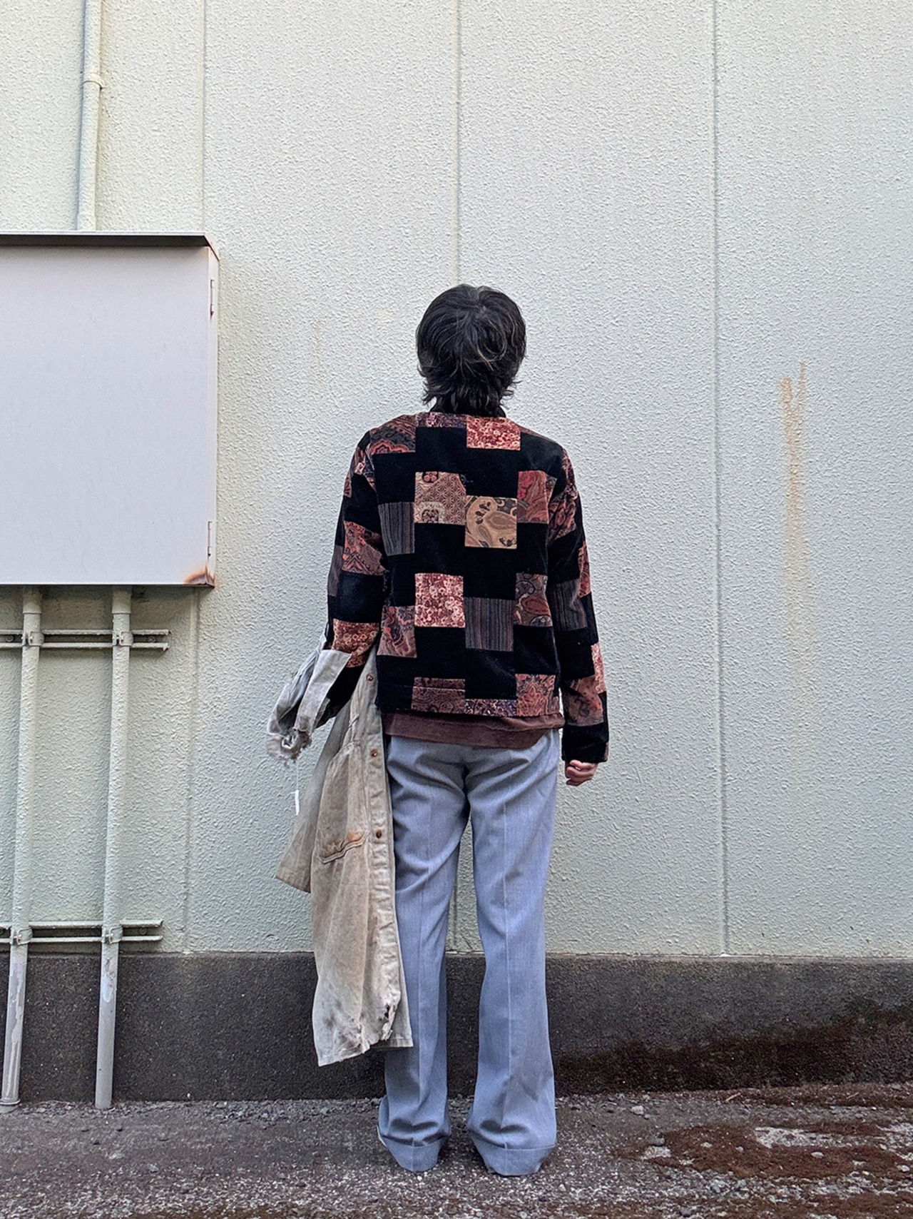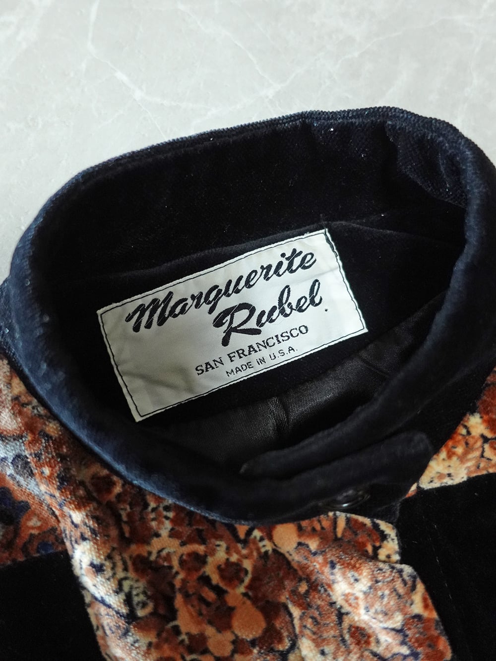 MADE IN USA VELOUR PATCHWORK MAO-COLLAR JACKET/アメリカ製パッチワークマオカラージャケット